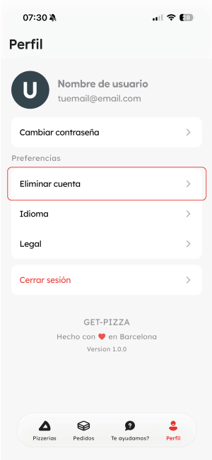 También puedes solicitar la eliminación enviando un email a: teayudamos@get-pizza.com